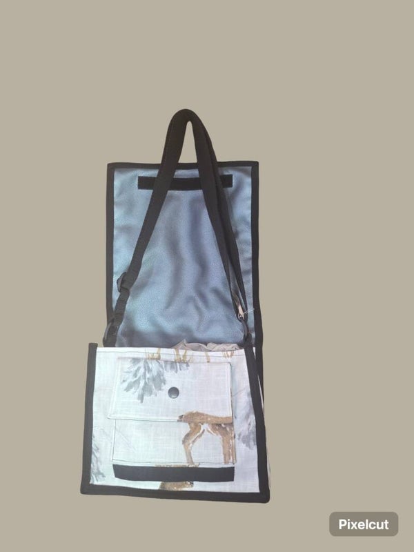 Diese einzigartige Tasche besticht durch ihr sanftes, naturverbundenes Design. Das Vorderteil zeigt ein wunderschönes, vintage-inspiriertes Reh-Motiv, das der Tasche eine warme, beruhigende und zugleich edle Ausstrahlung verleiht. Dank der harmonischen Farben fügt sich das Motiv perfekt in den hellen Stoff ein und macht die Tasche zum idealen Begleiter für alle, die Natur, Achtsamkeit und besonderen Stil lieben.
